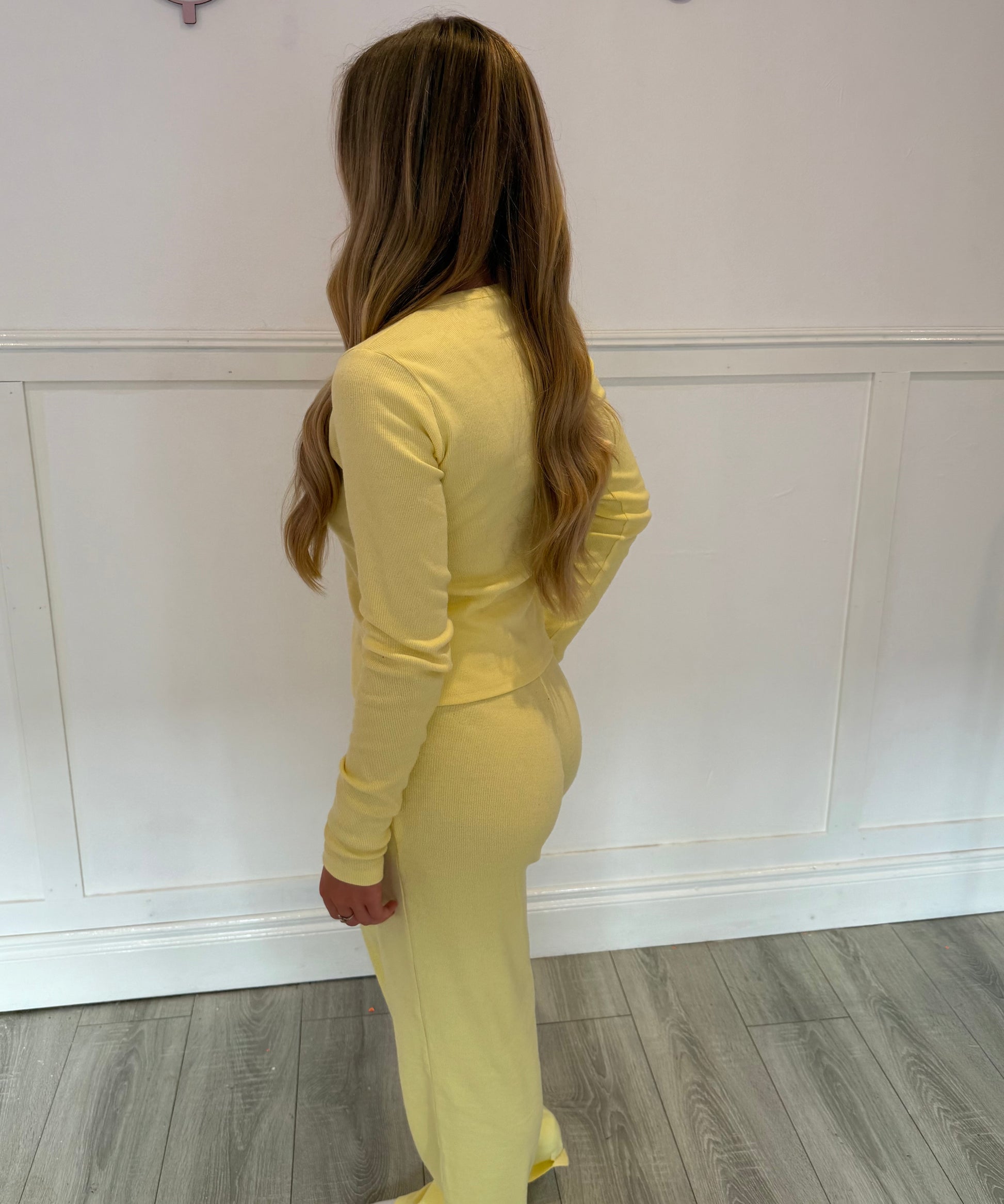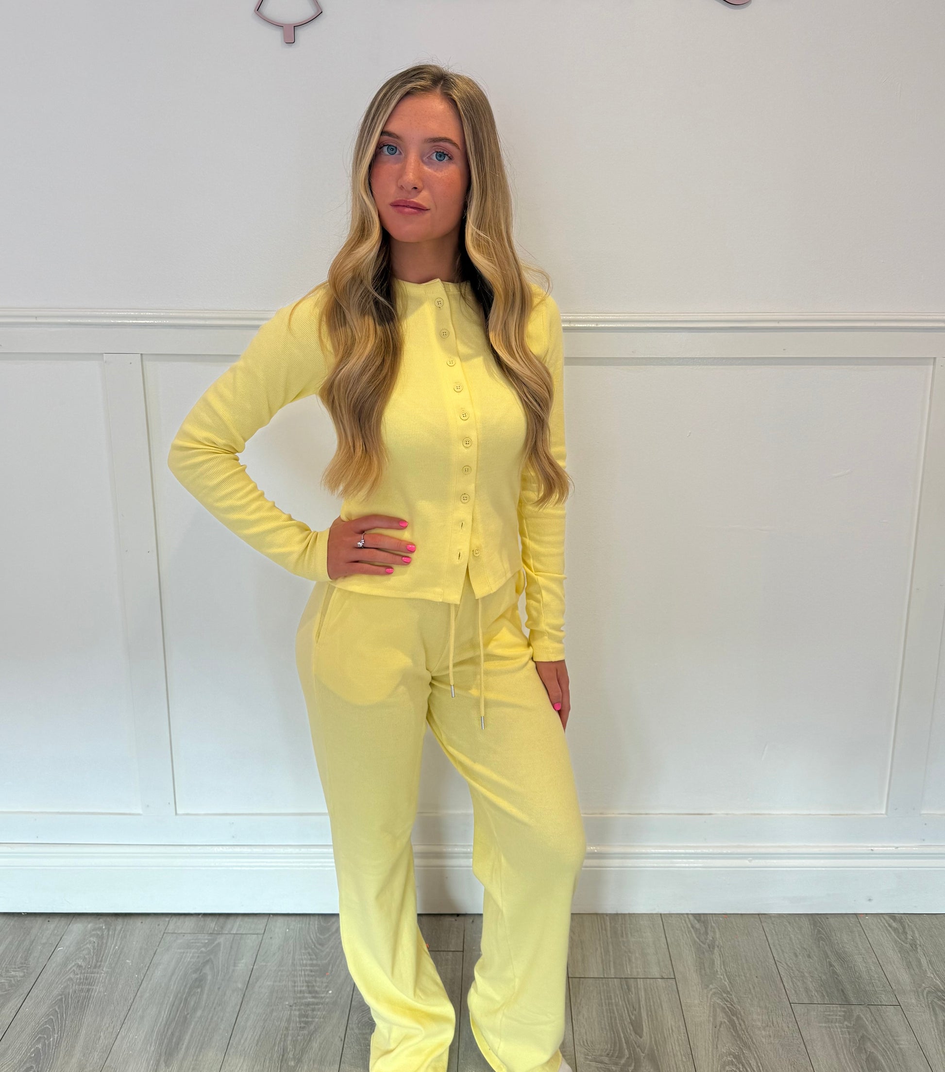 Say hello to your new fave co-ord 💛 The Sorbet Set is all about easy, comfy vibes with a cute twist. It features a soft button-up top and matching wide-leg bottoms in the dreamiest pastel yellow. Perfect for chilled days, brunch dates, or just looking effortlessly put together.